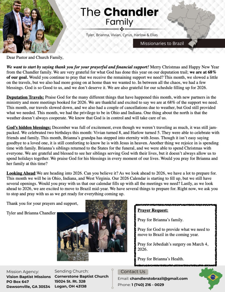 January Prayer Letter 2026